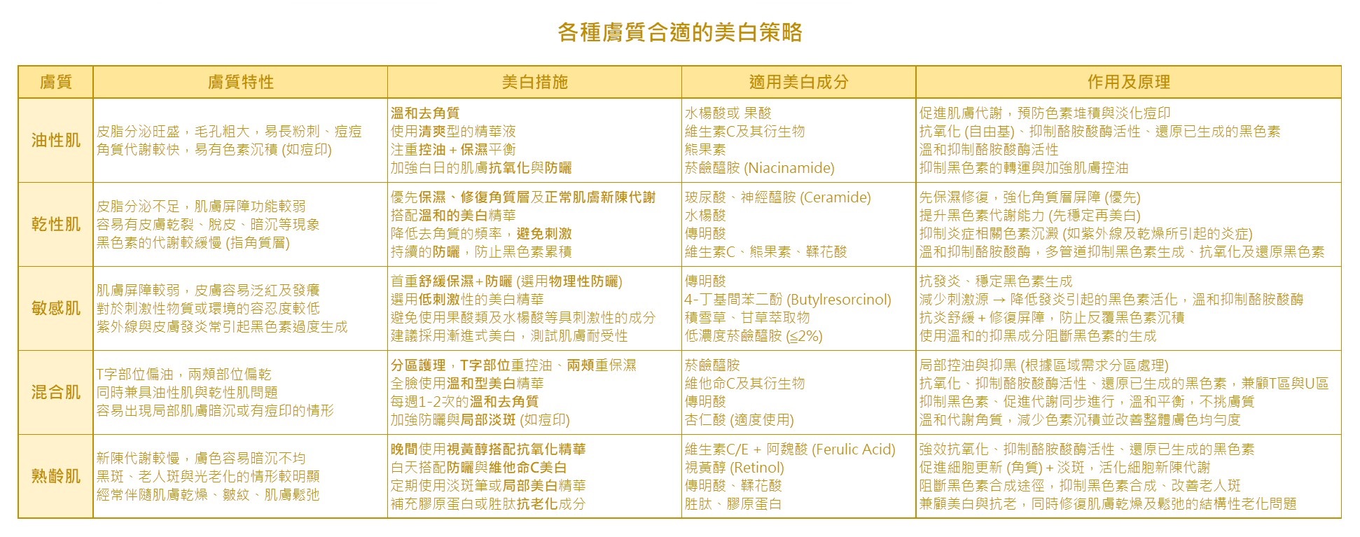 不同膚質的美白策略